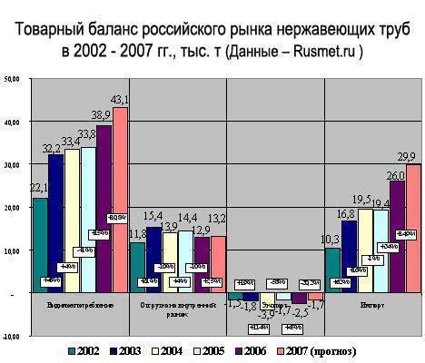 С 2002 по 2006 год объем российского рынка труб из нержавеющей стали увеличился, по оценке RUSMET, на 76% и достиг объёма 38,9 тыс. тонн.