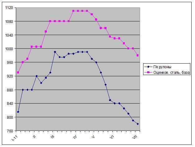 В результате, хотя переполнение внутреннего рынка наблюдается, прежде всего, в секторе горячего проката, цены падают на все категории листовой стали. Так, базовые цены на оцинкованную сталь впервые с января сократились до менее $1000 за метрическую т EXW, а холоднокатаные рулоны предлагаются по $890-930 за т EXW. Несколько подешевела даже толстолистовая сталь, которая в последние месяцы сохраняла стабильность благодаря повышенному спросу со стороны машиностроителей, трубопрокатчиков и энергетиков. По данным американских трейдеров, стоимость продукции А36 уменьшилась от около $1200 за метрическую т EXW в мае-июне до около $1130-1150 за т EXW в настоящее время.