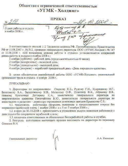 Уральская горно-металлургическая компания прекращает работать. Пока с 1 по 9 ноября включительно. В распоряжение «URA.Ru» оказался приказ гендиректора компании Андрея Козицына, поручившего остановить работу в холдинге на 9 дней. Есть еще один приказ – задним числом, как будто выполняя нормы КЗоТа, металлург избавился от 500 человек. И это только часть решений. Почему рабочие «Уралэлектромеди» радуются кризису, где надо жить, чтобы Козицын тебя не уволил, насколько сократились зарплаты у медников – все это в нашем материале. В распоряжении «URA.Ru» оказался приказ генерального директора УГМК-Холдинга Андрея Козицына, которым он, по сути, останавливает работу управляющей компании до 10 ноября. В приказе № 219 указывается, что в начале ноября в России сразу три выходных дня подряд, после чего написано: «В целях обеспечения рентабельной работы […] приказываю предложить работникам оформить заявления о предоставлении отпуска без сохранения заработной платы 1 ноября и с 5 по 7 ноября 2008 года». Поскольку 8 и 9 ноября – это выходные дни, первый раз на работе менеджеры компании должны будут появиться только 10 ноября. «Это был точный психологический расчет, - утверждает наш источник в компании. – Официально суббота, 1 ноября, - это рабочий день. Но люди уже привыкли работать по пять дней, и им прозрачно намекнули, что на субботу всем управленцам можно взять отгул. Так и будет, отделами сотрудники уйдут в неоплачиваемый отгул. Вот так снова сэкономили». В этой фразе ключевое слово – «снова». Из рассказа нашего собеседника выясняется, последние недели руководство компании лихорадочно ищет возможности для сокращения издержек. И не только среди управленцев, но и на производствах. Еще один документ, попавший в редакцию, это подтверждает. Приказ Андрея Козицына № 147 датирован 13 августа, но есть мнение, что подготовили его несколько недель назад, а оформили - задним числом, чтобы соблюсти требования трудового законодательства, требующего предупреждать работников об увольнении за два месяца. Приказом установлено, что с 15 октября до особого распоряжения генерального директора УГМК рабочий день сокращен и длится всего семь часов минус один час на обед. Всем работающим по совместительству предложено написать заявления на отпуск без сохранения заработной платы. Один из рабочих «Уралэлектромеди» - головного предприятия холдинга – рассказал, что комбинат отказался от сотрудничества со всеми подрядчиками. Рабочие вспомогательных производств (например, маляры) порциями отправляются в 10-дневные отпуска без сохранения заработной платы.