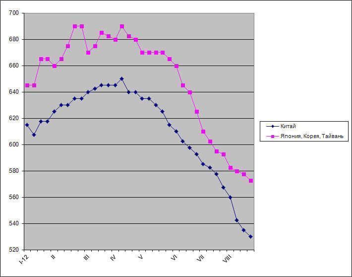 Безусловно, в начале сентября региональные металлургические компании повторят попытку остановки спада и наверняка объявят о небольшом повышении цен. Но в условиях слабого рынка решить эту задачу им будет весьма сложно. Их основная проблема заключается в том, что металлурги не могут особо рассчитывать на расширение внутреннего спроса. В Китае улучшение ожидается не раньше четвертого квартала и лишь при условии сокращения объемов выпуска. В Японии достаточно серьезным фактором может стать прекращение действия запущенной еще в 2009 году программы субсидирования покупок экономичных автомобилей. По прогнозам специалистов, прекращение финансирования по этой статье приведет к сокращению продаж легковых машин на 10-20% в четвертом квартале текущего года.