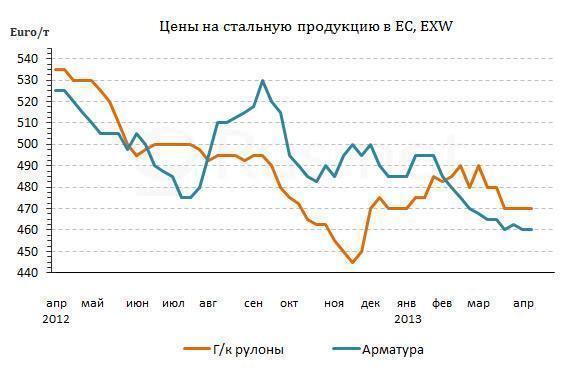 Практически все специалисты оценивают перспективы европейского рынка стали весьма пессимистично. Цены в ближайшее время, возможно, и не упадут, но их повышение выглядит маловероятным. Спрос, очевидно, останется таким же слабым. Кроме того, 9 апреля Конституционный Суд Италии объявил соответствующим конституции принятое в конце прошлого года постановление парламента, разрешавшего работу меткомбината Ilva, пока там будет реализовываться программа модернизации и повышения экологической безопасности. Это решение отменяло принятый ранее вердикт местного суда, который постановил прекратить работу Ilva – крупнейшего металлургического предприятия Западной Европы, дающего работу почти 20 тыс. человек в южноитальянском городе Таранто.