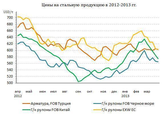 Вторым «слабым местом» на мировом рынке стали в марте предсказуемо оказалась Европа. Некоторые производители надеялись на повышение котировок в конце первого квартала, но слабость реального сектора региональной экономики перечеркнула эти расчеты. Спрос на прокат в большинстве стран Евросоюза оказался резко ограниченным. А события на Кипре, под знаком которых прошла вся вторая половина месяца, окончательно убавили деловую активность в Европе до минимума. Дистрибуторы и конечные потребители стараются минимизировать запасы стальной продукции, опасаясь нового спада, а аналитики прогнозируют на апрель снижение региональных цен на прокат не менее чем на 10 евро за т.