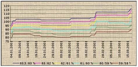 Так, цены на индийскую железорудную мелочь с содержанием железа 63,5 %, поставляемую в Китай, составляли на 17 марта $145-147/т cfr ($117/т fob), с содержанием железа 63/62% - $142-144/т cfr ($114/т fob), 62/61% - $137-140/т cfr ($109/т), 61-60% - $131-135/т cfr ($103/т), 60/59% - $124-128/т ($96/т) и 59/58% - $118-122/т ($90/т). Отметим, что еще 12 марта цены были на $7/т ниже.