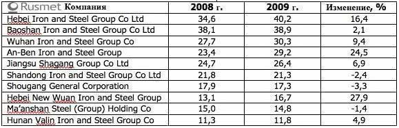 Достаточно сложным стал прошедший год и для металлургических компаний Китая, которые в начале кризиса также испытывали определенные сложности. Однако, правительственная политика по обеспечению роста и расширению внутреннего спроса позволила черной металлургии страны добиться существенных успехов в условиях финансово-экономического кризиса. В отличие от большинства других стран мира китайские металлургические компании смогли существенно нарастить производство черных металлов и увеличить добычу ЖРС.