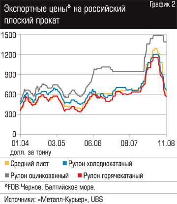 а вот стоимость плоского проката пока относительно устойчива — от июльских максимумов она снизилась всего на 15–20% (см.
