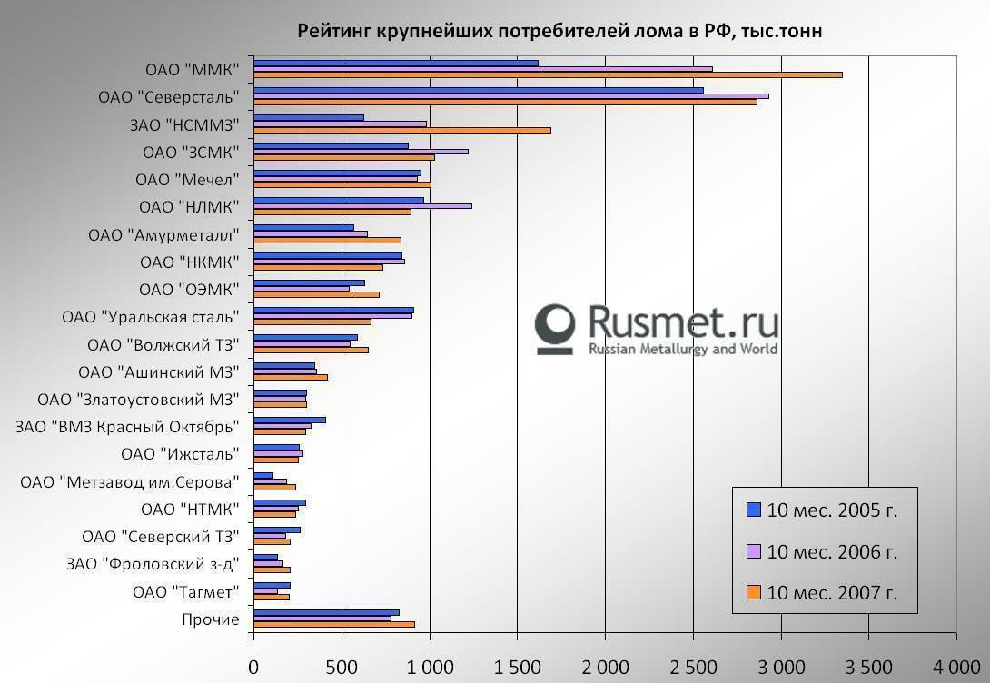 Итак, по итогам 10 месяцев, прошедших с начала года, рейтинг крупнейших потребителей лома в сегменте черной металлургии выглядит следующим образом: