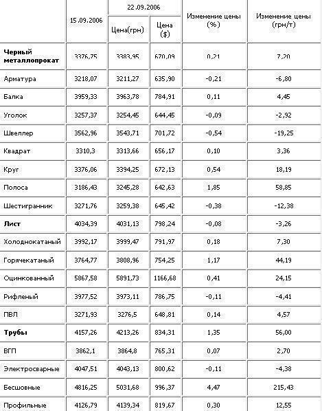 Ценовые тенденции на рынке черного металлопроката, г. Киев