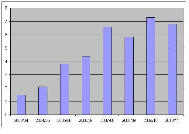 /Rusmet.ru, Виктор Тарнавский/ В последние годы Индия была одной из немногих стран мира, увеличивавших объемы импорта стали невзирая на кризис. По официальным данным правительства страны, максимального значения этот показатель достиг в 2009/2010 финансовом году (апрель/март) – почти 7,3 млн. т (готовый прокат из углеродистой стали), на 25% больше, чем годом ранее. Однако по итогам 2010/2011 финансового года было зафиксировано сокращение объема закупок до 6,8 млн. т, тогда как экспорт увеличился на 6,5%, до 3,46 млн. т.