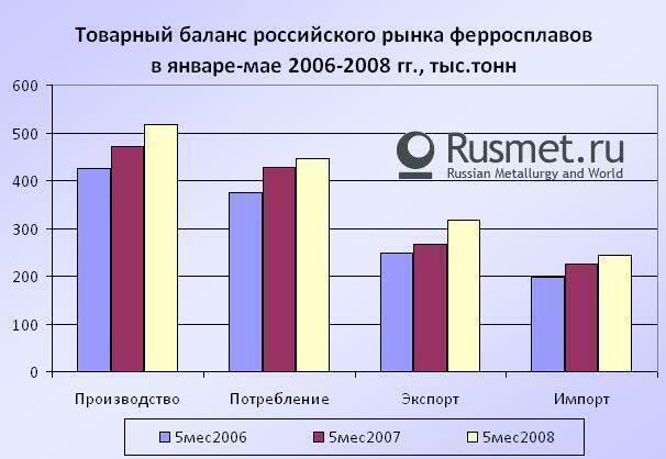 При всем при этом нельзя не отметить тот факт, что потенциал роста объемов ферросплавной продукции продолжает реализовываться сейчас все больше на внешних рынках. Суммарное потребление ферросплавной продукции в России по сравнению с прошлым годом выросло всего на 4%. Спрос же основного потребителя ферросплавов - металлургического сегмента за пять месяцев даже немного сократился (-2-3% к уровню аналогичного периода прошлого года), и это при ощутимом росте импортных поставок.