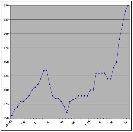 Европейским металлургам помогает то, что на рынке нет избытка предложения. Производители, вернув в конце прошлого года в строй часть мощностей, остановленных во время кризиса, отказались затем от дальнейшего расширения выпуска. Объемы импорта из других регионов незначительные, а по ценам импортная продукция не конкурентоспособнее местной. Так, российские компании предлагают горячекатаные рулоны по $700-710 (т.е. около 522-530 евро) за т FOB, а китайские – по $780 (582 евро) за т CFR с поставкой в июне-июле.Таким образом, можно предположить, что европейским компаниям в апреле удастся снова поднять цены, хотя, возможно, и не до тех уровней, на которые они претендуют. Тем не менее, низкий спрос в ближайшие месяцы будет оставаться «ахиллесовой пятой» европейского рынка стали. Многие специалисты по-прежнему прогнозируют на нем спад, хотя теперь сдвигают его на лето.
