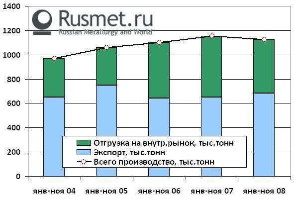 В ноябре объемы экспорта оказались лишь немногим ниже среднегодового уровня, в то время как внутренние поставки упали, причем очень и очень существенно. В ноябре был достигнут рекордный минимум отгрузок – в частности потребители металлургического сектора получили менее 20 тыс. тонн ферросплавов (в то время как средний уровень отгрузок в январе-сентябре составлял 60-70 тыс.тонн).
