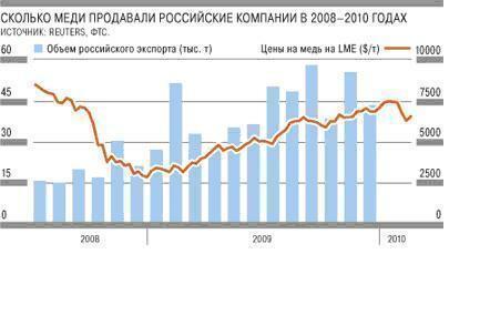 Китай — крупнейший в мире потребитель меди, в 2008 году на него пришлось 28,5% мировых поставок металла, в 2009 году — почти 40%. Российские производители меди вчера не смогли прокомментировать объемы своих поставок в Китай и прогнозы спроса и ценообразования на 2010 год. По оценке аналитика ING Максима Матвеева, всего в 2009 году российские металлурги экспортировали 25% своей продукции, но сколько из этого пришлось на Китай, сказать трудно: даже если компания продавала в Европе, через трейдеров медь могла экспортироваться в Китай, поясняет аналитик.