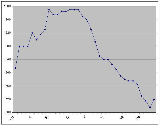 Первой реакцией рынка на эту инициативу сталелитейных компаний стало… продолжение спада. Как заявляли трейдеры, многие поставщики в конце первой половины августа сбрасывали цены, предлагая «последнюю» имеющуюся в их распоряжении дешевую продукцию. Стоимость горячекатаных рулонов при этом сократилась до $685-705 за метрическую т EXW, а некоторые продавцы даже были согласны и на около $600 за короткую т ($661 за метрическую т) – уровень, который считался специалистами крайней точкой падения.