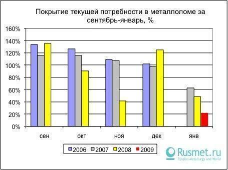 Снижение закупок и цен, начавшееся в октябре, подвигло ломозаготовителей на значительное сокращение деятельности. В декабре они избавились от остатков, т.к. были нужны «живые» деньги, чтобы пережить зиму, а также прогнозируя дальнейшее снижение выплавки стали. Однако производство в январе превысило уровень не только декабря, но и ноября прошлого года.