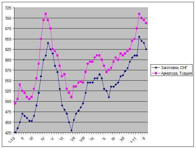 В начале февраля из крупных региональных компаний только Qatar Steel заявила об увеличении котировок, примерно, на 6% из-за подорожания окатышей, которые она импортирует. В ОАЭ и Саудовской Аравии цены остались на прежнем уровне, а в Иране вот уже третий месяц продолжается понижение. В Турции, где строительная отрасль в начале года демонстрировала довольно высокие темпы роста, образовался избыток предложения арматуры вследствие массового переориентирования местных компаний на внутренний рынок, из-за чего базовые котировки, две недели тому назад превышавшие $710 за т EXW (без НДС), упали до $680-690 за т EXW.