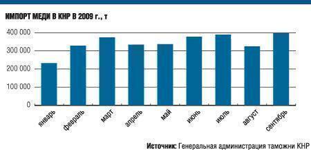 Согласно предварительным данным таможенных властей КНР, представленным вчера, в сентябре Китай нарастил импорт меди на 23%, до 399,052 тыс. т. Это стало неожиданностью для рынка, так как согласно прогнозам ожидалось, что Поднебесная на протяжении весны—лета накопила достаточные запасы и вскоре продолжит сокращать потребление меди на фоне роста цен на нее. Аналитики прогнозировали, что объем импорта в первом месяце осени не превысит 300 тыс. т. Такие оценки основывались на таможенной статистике за август, когда объемы импорта металла начали снижаться (до 325,025 тыс. т, то есть на 20% меньше, чем в июле). Данные по импорту за сентябрь вселили оптимизм в биржевых игроков: котировки трехмесячных фьючерсов на медь на Лондонской бирже металлов выросли вчера на 75 долл., до 6215 долл. за тонну. Напомним, за восемь месяцев года импорт меди в КНР составил 2,97 млн т, что на 75% выше, чем в январе—августе 2008 года.