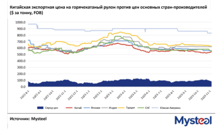 Только за октябрь китайский экспорт стали составил 7,94 млн. т, снизившись на 1,5% по сравнению с сентябрем, но увеличившись на 53,1% по сравнению с октябрем 2022 г., когда мировой спрос на сталь был в целом снижен из-за пандемии, высокой инфляции и геополитических конфликтов.