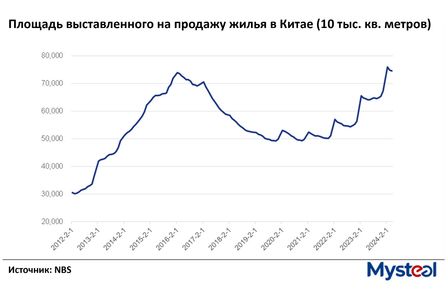 Что касается предложения, то общая площадь коммерческого жилья, выставленного на продажу по всей стране, остается на относительно высоком уровне. К концу апреля предложения на китайском рынке недвижимости составили 745,53 млн кв. м, увеличившись на 15,7% в годовом исчислении, согласно данным, опубликованным Национальным бюро статистики (NBS) страны.