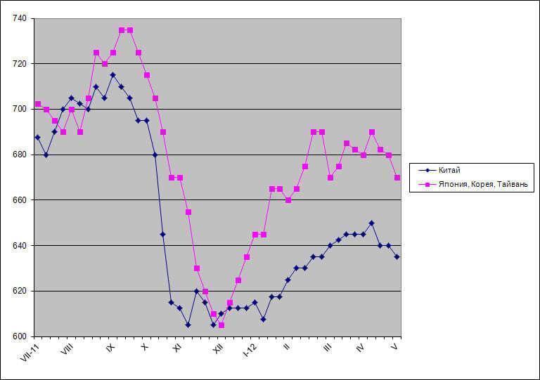 К аналогичной политике были вынуждены прибегнуть и японские компании, сбавившие цены на горячий прокат до $670-680 за т FOB. По данным металлургов, спрос на их продукцию оставляет желать много лучшего внутри страны, а на внешних рынках активность проявляет только Таиланд, где крупнейшими покупателями этой продукции являются автозаводы, построенные японскими компаниями. В то же время, поставки в Корею, на Тайвань, в страны Юго-Восточной Азии сократились.