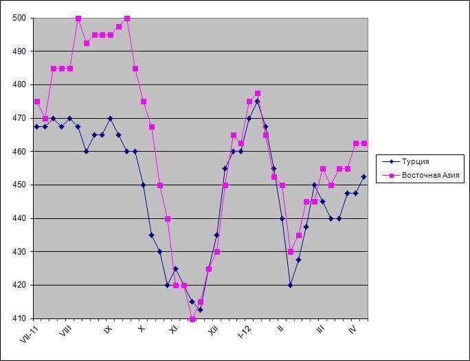 Правда, в США и Японии внутренние котировки на металлолом в начале апреля все-таки понизились. В США основные сорта подешевели на $10-20 за т из-за относительного слабого спроса на местном рынке. В Японии мини-заводы, в течение марта приобретавшие лом все дороже и дороже, в начале апреля развернули ценовой маятник в обратную сторону. Компания Tokyo Steel Manufacturing, в частности, с 10 апреля сократила закупочные цены на лом на 500 иен (немногим более $6) за т.