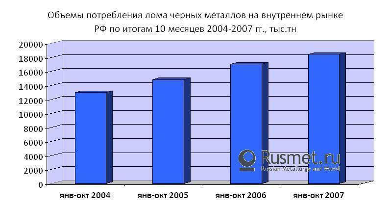 Начать, пожалуй, стоит с наиболее важного фактора – объемов внутреннего потребления, которые последние два года оказывают решающие воздействие на цены, объемы экспорта и общую рыночную ситуацию. Итак, за 10 месяцев текущего года суммарный спрос промышленности России на лом черных металлов составил порядка 18,5 млн.т, что превышает показатели прошлого года за аналогичный временной отрезок на 8,5%. В целом, динамика поставок лома металлургам и машиностроителям страны сильно напоминала, прошлогоднюю, за исключением более высокого уровня отгрузке в январе-феврале (что было обусловлено боле теплой погодой и повышенным спросом) и скачком потребления в мае.