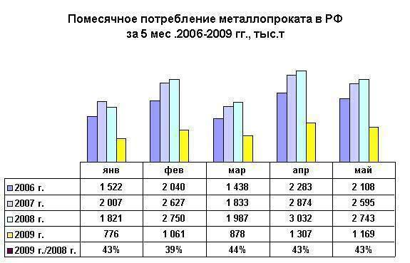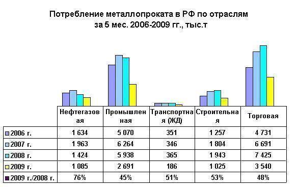 /Rusmet.ru, Сергей Балагушкин/ При рассмотрении кризисных явлений в подавляющем большинстве аналитических материалов рассматриваются тенденции производства (главным образом из-за относительной простоты). Однако представляется, что при незначительном снижении объемов экспорта такой анализ недостаточно объективен. В данной статье делается попытка определить внутренние объемы нетто-потребления основных видов металлопроката (лист, сорт, трубы) методом анализа базы железнодорожных перевозок. Опыт показывает, что абсолютные значения занижены примерно на 10%, однако относительные с достаточной степенью точности отражают складывающиеся тенденции.