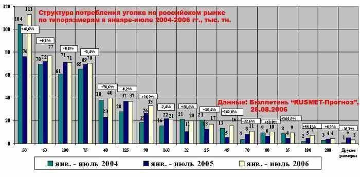 Из всего сорта швеллер единственный не показал большого относительного увеличения продаж мелких типоразмеров, но, тем не менее, реализация мелкого швеллера тоже выросла.