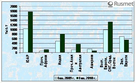 Мировое производство хромовой руды в I кв. 2010 г. выросло на 43 %