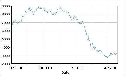 Динамика цен на алюминий на ЛБМ (cash) c 01.01.2008 г. по 31.01.2009 г.