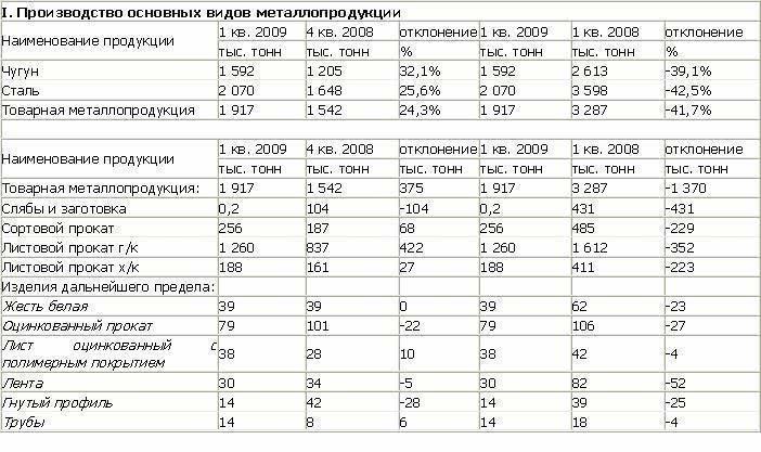 ММК объявляет производственные результаты по итогам 1-го квартала 2009 года