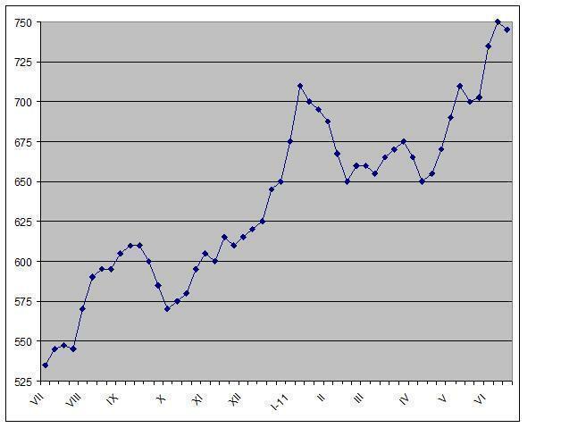 В конце первой декады июня производители были вынуждены отступить и сбавили котировки до $760-785 за т EXW, но им пока не удается вернуть покупателей на рынок. Дистрибуторы, успевшие немного пополнить свои запасы в последние несколько недель, выжидают, рассчитывая на дальнейшее понижение цен. По их мнению, металлурги вполне в состоянии пойти на более значительные уступки, поскольку их затраты, в частности, на металлолом выросли в конце мая – начале июня в гораздо меньшей степени, чем цены на готовую стальную продукцию.