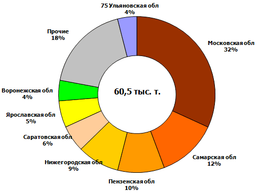С начала месяца максимальная отгрузка производилось из Московской, Самарской и Пензенской областей.