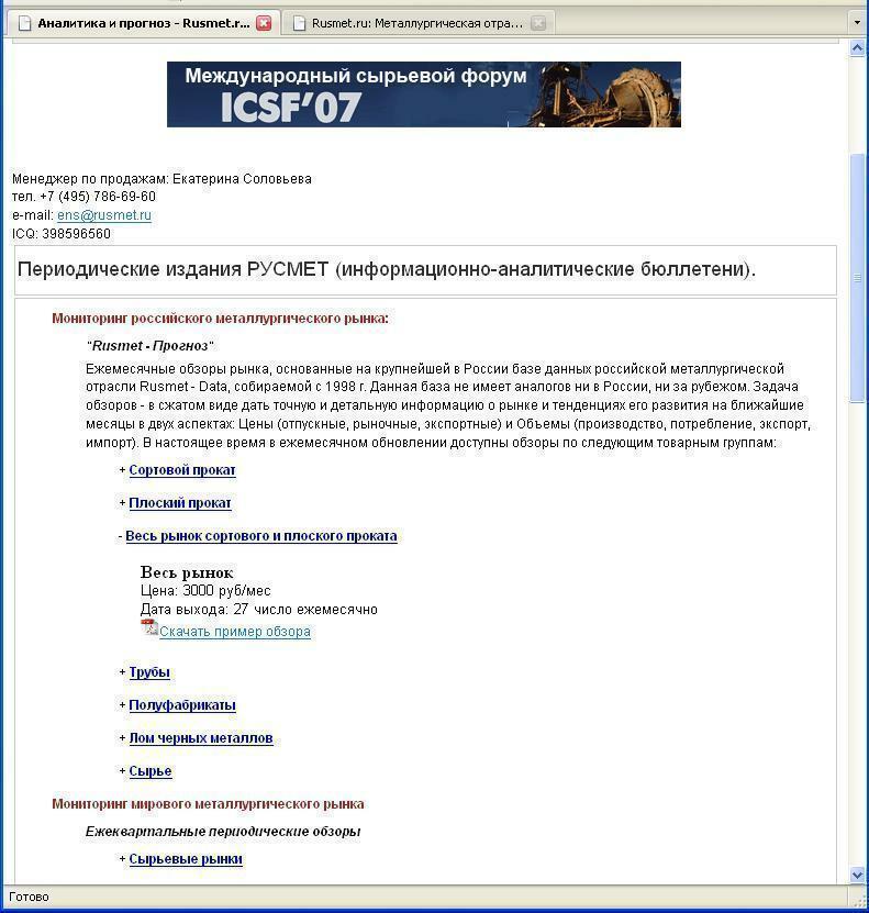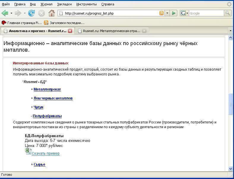 На нашей страничке всегда можно ознакомиться с продуктами, а также «скачать» примеры всей нашей периодической аналитики.