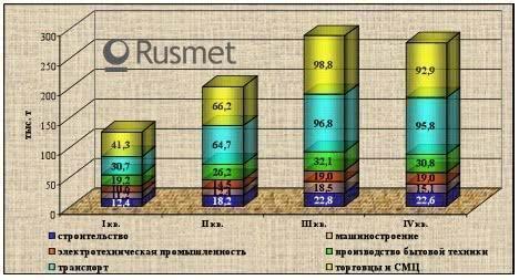 Несколько изменилась структура потребителей нержавеющей стали в Японии. Можно отметить рост доли заказов со стороны торговых компаний и СМЦ, сохранение на прежнем уровне доли заказов со стороны строительства при снижении доли остальных потребителей. При этом надо отметить, что в структуре потребления увеличилась доля заказов, идущих на экспорт непосредственно с заводов.