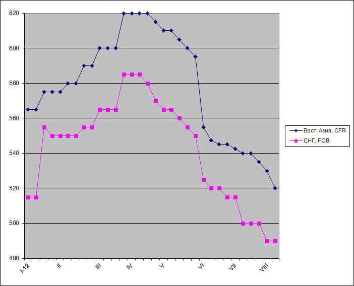 Основной конфликт на рынке полуфабрикатов происходит между поставщиками и восточноазиатскими прокатными заводами, которым приходится снижать цены на свою продукцию из-за ужесточающейся конкуренции со стороны китайских компаний. Тайванские и корейские прокатчики, указывая на падение котировок на китайский горячий прокат до $535-545 за т FOB, требуют уменьшения стоимости слябов до менее $480 за т CFR, однако поставщики не соглашаются на такие уступки.