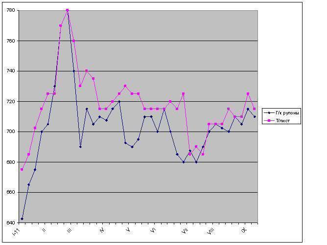 Японские корпорации, воодушевленные восстановлением внутреннего рынка, планируют повышение не менее чем на $40-50 за т, объясняя свои действия ростом курса иены по отношению к доллару. В частности, компания Tokyo Steel Manufacturing предлагает горячекатаные рулоны азиатским покупателям по $800 за т FOB, а интегрированные комбинаты хотят выйти на уровень более $800 за т FOB при октябрьских поставках аналогичной продукции корейским производителям холодного проката.