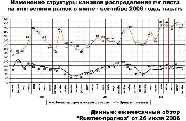 Динамика цен на листовой прокат породила небезынтересную, хотя и временную и редко наблюдаемую конкуренцию между трейдерами и производителями. Дело в том, что все чаще встречаются ситуации, когда со складов трейдеров листовой металлопрокат предлагается по цене ниже завода-изготовителя. Это стало возможным после стабилизации цен на заводах и в силу серьезного их роста (15-25%) за последние 3-4 месяца.