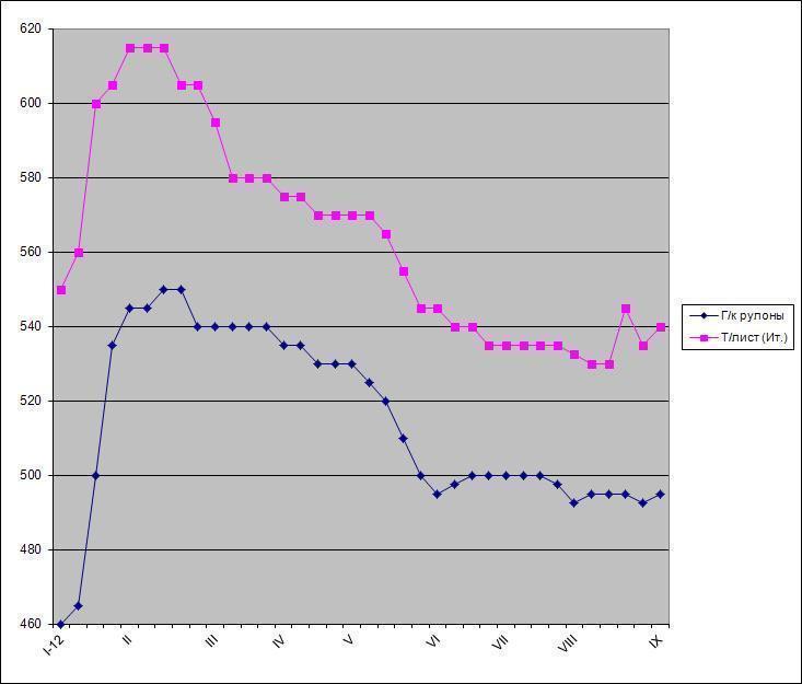В конце лета большинство европейских производителей стали не анонсировали повышения цен на сентябрь, хотя некоторые компании попытались все-таки приподнять свои котировки. Наиболее успешно это удалось итальянским металлургам, воспользовавшимся неопределенной ситуацией вокруг крупнейшего в стране меткомбината Ilva, принадлежащего компании Riva Group. Хотя, судя по всему, это предприятие продолжит работу несмотря на ряд судебных решений, требующих его частичного закрытия, пока не будут построены новые газоочистные сооружения, некоторые итальянские компании увеличили стоимость плоского проката (основная продукция Ilva) на 20-30 евро за т. В частности, цены на горячекатаные рулоны возросли от прежних 460-480 евро до около 490 евро за т EXW, а коммерческая толстолистовая сталь подорожала от 520-540 до 530-550 евро за т EXW.
