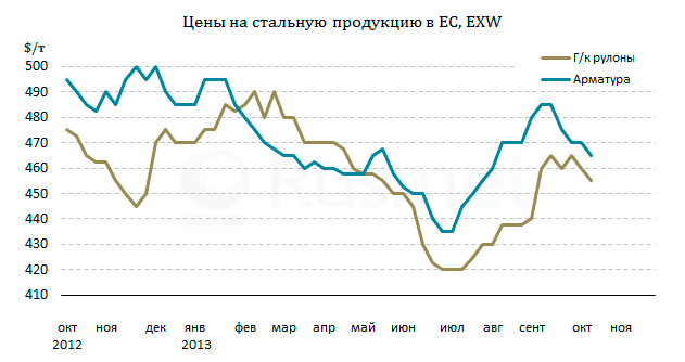 /Rusmet.ru, Виктор Тарнавский/ Восстановление европейского рынка стали, давшее местным металлургическим компаниям возможность поднять котировки на свою продукцию на 20-30 евро за т, оказалось непродолжительным. Уже во второй половине сентября покупательская активность практически сошла на нет, а в октябре производителям пришлось переходить к понижениям цен при заключении ноябрьских контрактов. При этом, по мнению многих участников рынка, стоимость стальной продукции в странах Евросоюза теперь будет опускаться, как минимум, до конца текущего года.