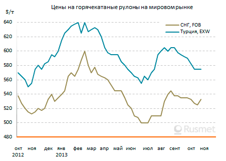 Из-за слабого спроса в странах Ближнего Востока приоритетным направлением для российских и украинских металлургов стала во второй половине октября Европа. Украинские компании успешно продавали в страны Восточной Европы горячекатаные рулоны по $560-570 за т DAP и толстолистовую сталь по ценам порядка $600 за т DAP. Российский горячий прокат котировался в Польше на уровне $590-595 за т DAP, а страны юга Европы отправлялся по $550-560 за т FOB.