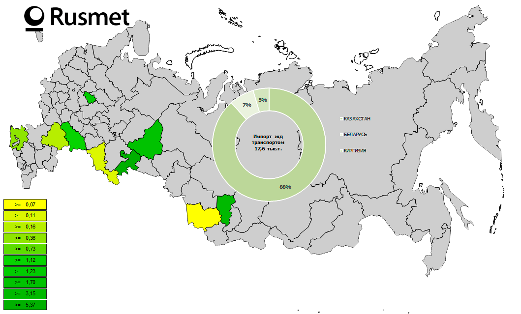 Структура импорта лома черных металлов жд транспортом на территорию РФ, тыс.т.
