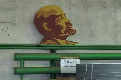 Разумеется, как и на всяком приличном заводе, есть место и "народной" мотивации персонала (где портретом классика марксизма-ленинизма,