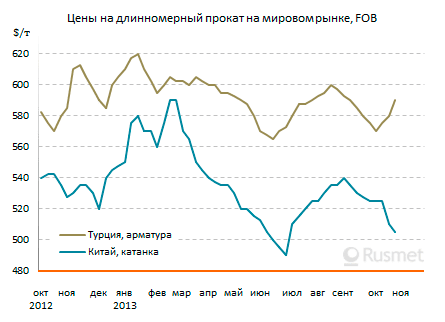 Турецкие металлургические компании перед праздниками продавали арматуру по $570-580 за т FOB, но некоторые поставщики выставляли предложения и на уровне $590 за т FOB, а в последние дни на рынке появились цены порядка $600 за т FOB. Металлурги рассчитывают на увеличение спроса на конструкционную сталь в конце октября – начале ноября. По их данным, складские запасы продукции у потребителей сократились до минимума, так что ближневосточным дистрибуторам в ближайшее время придется приступить к их пополнению.