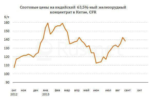 руды, сократили объемы закупок. Котировки на 63,5%-ный индийский концентрат, в