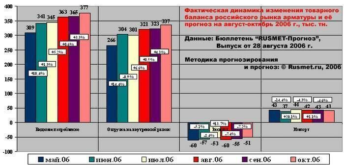 Обратимся к фактической и прогнозируемой экспертами Rusmet.Ru динамике товарного баланса рынка арматуры.