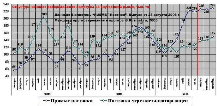 Ажиотажный спрос на арматуру в мае-июле был обусловлен резким ростом спроса со стороны конечных потребителей при высоких складских остатках арматуры у металлоторговцев. За насыщением внутреннего рынка в условиях заметного сокращения экспорта и резкого сокращения спроса на нее на внутреннем рынке к концу строительного сезона последует его разворот в обратную сторону: заводы, скорее всего, будут вынуждены понизить отпускные цены, что может поставить торговые компании с дорогими остатками арматуры на складах в сложное положение.