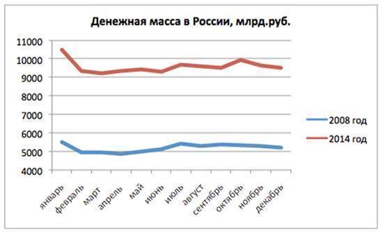 Рублевая денежная масса в России, данные ЦБ РФ