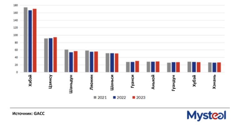 Согласно последним данным Национального бюро статистики Китая (NBS), в восьми из 10 крупнейших провинций и автономных районов Китая, производящих сталь, производство нерафинированной стали в январе-сентябре выросло в годовом исчислении.