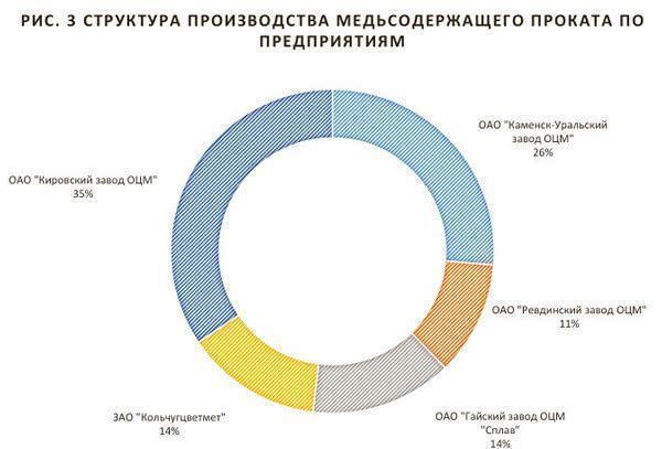 Основной российский производитель медьсодержащего проката - ОАО «Кировский завод ОЦМ» (35%), ОАО “Каменск-Уральский завод ОЦМ” производит 26% от общего объема проката. ОАО «Гайский завод ОЦМ «Сплав» и ЗАО «Кольчугцветмет» производят по 14% общего объема.