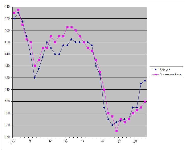 Добившись такого мощного роста внутри страны, американские компании попытались осуществить аналогичное подорожание и при экспорте, однако результат оказался более скромным из-за слабого спроса. Котировки в августе значительно поднялись только в Турции, где существовала реальная нехватка металлолома. Кстати, в последние дни активность покупателей уменьшилась, а цены на американский материал HMS № 1&2 (80:20) при заключении сделок опустились до $415 за т CFR и менее. Впрочем, трейдеры пока не идут на уступки, рассчитывая на новую волну закупок в августе.